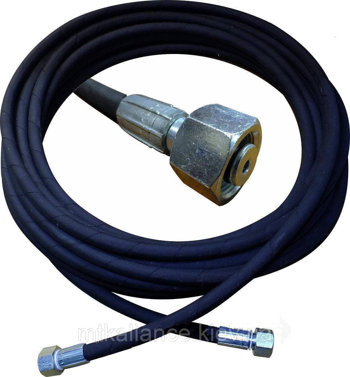 Шланг високого тиску призначений для професійних апаратів високого тиску. До апарата шланг кріпиться через нарізне з'єднання М 22х1.5.